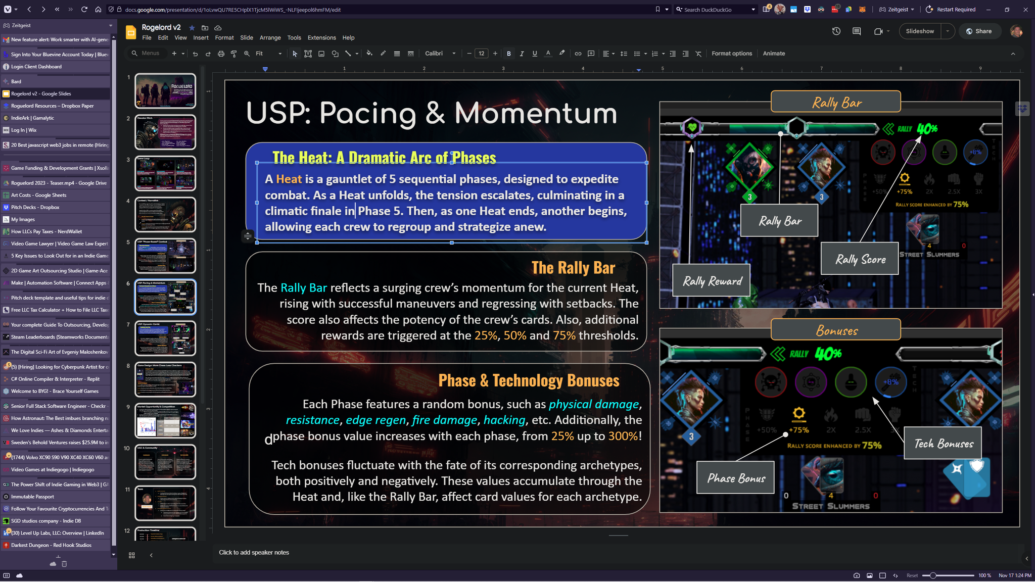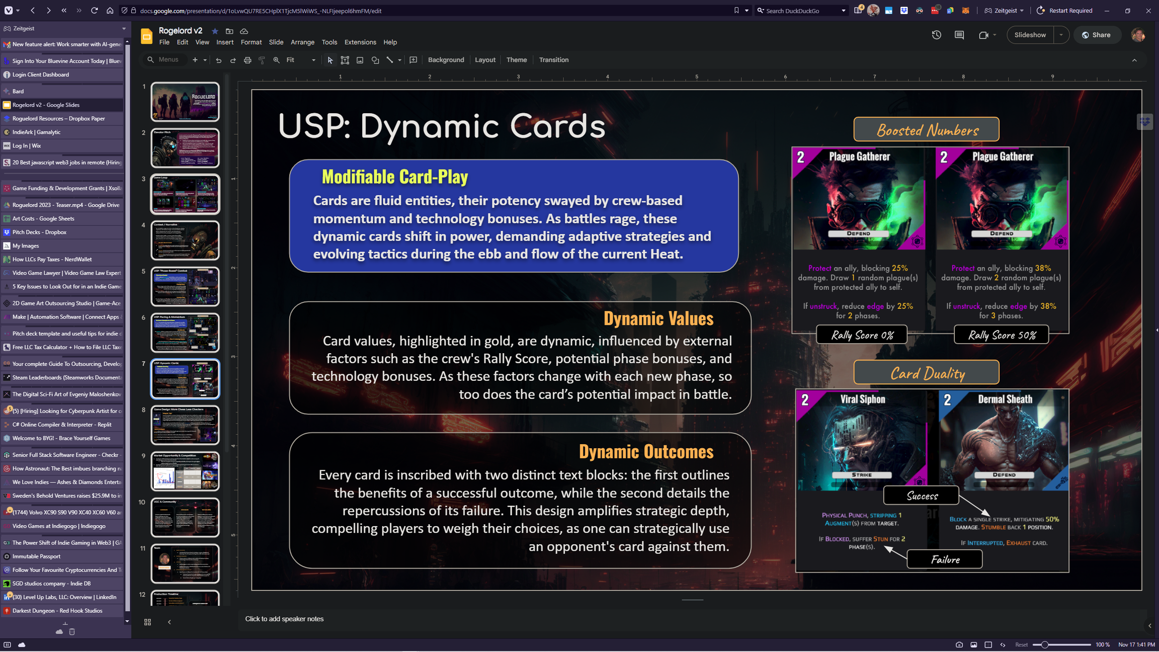 Roguelord’s cards are living entities, their potency influenced by the crew's momentum and tech bonuses, necessitating adaptive strategies as they ebb and flow with the battle's rhythm.