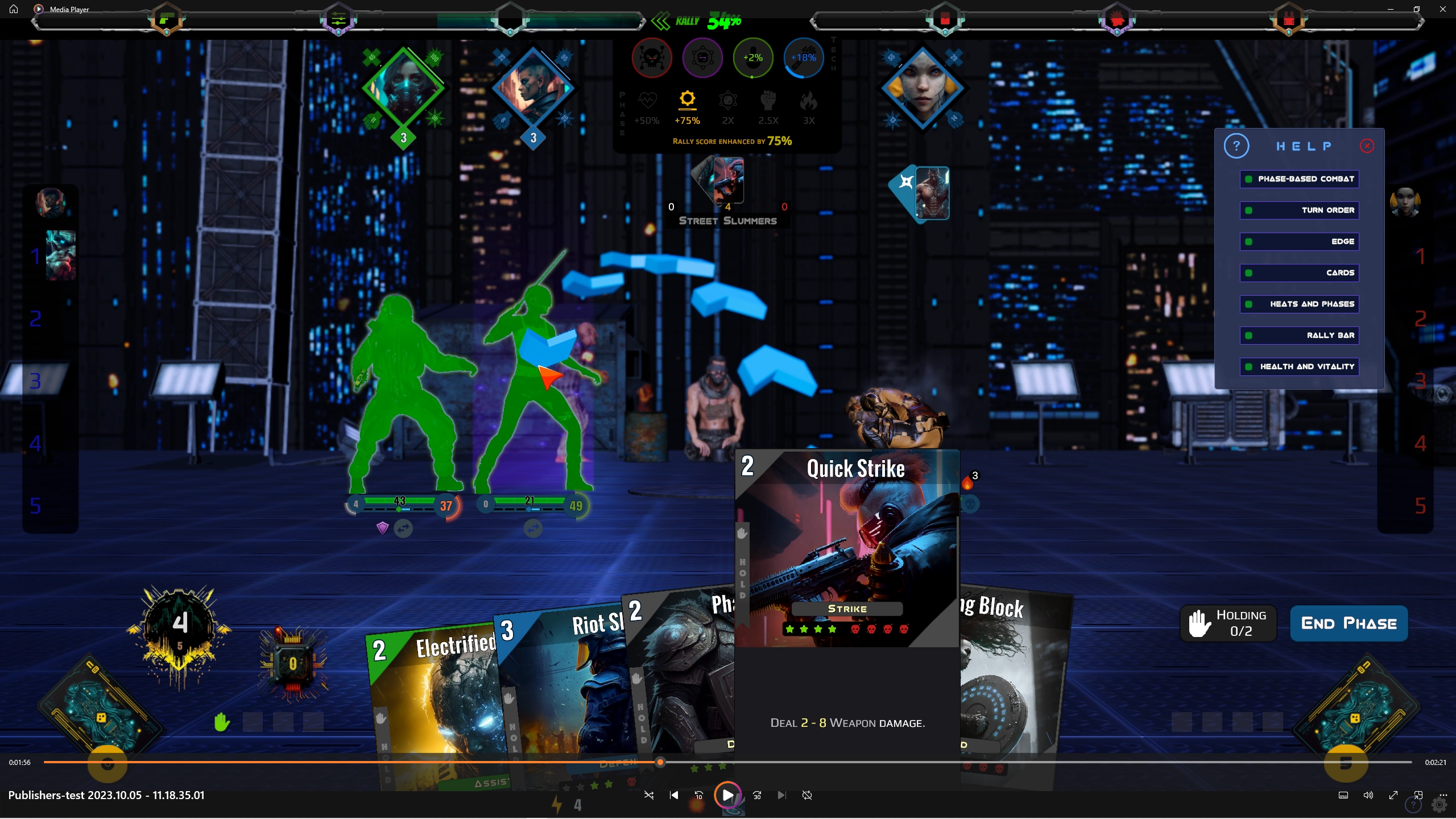 Sit back and behold as both crews collide in a violent, cinematic scrum, their queued card strategies activating in a real-time strategic showdown.